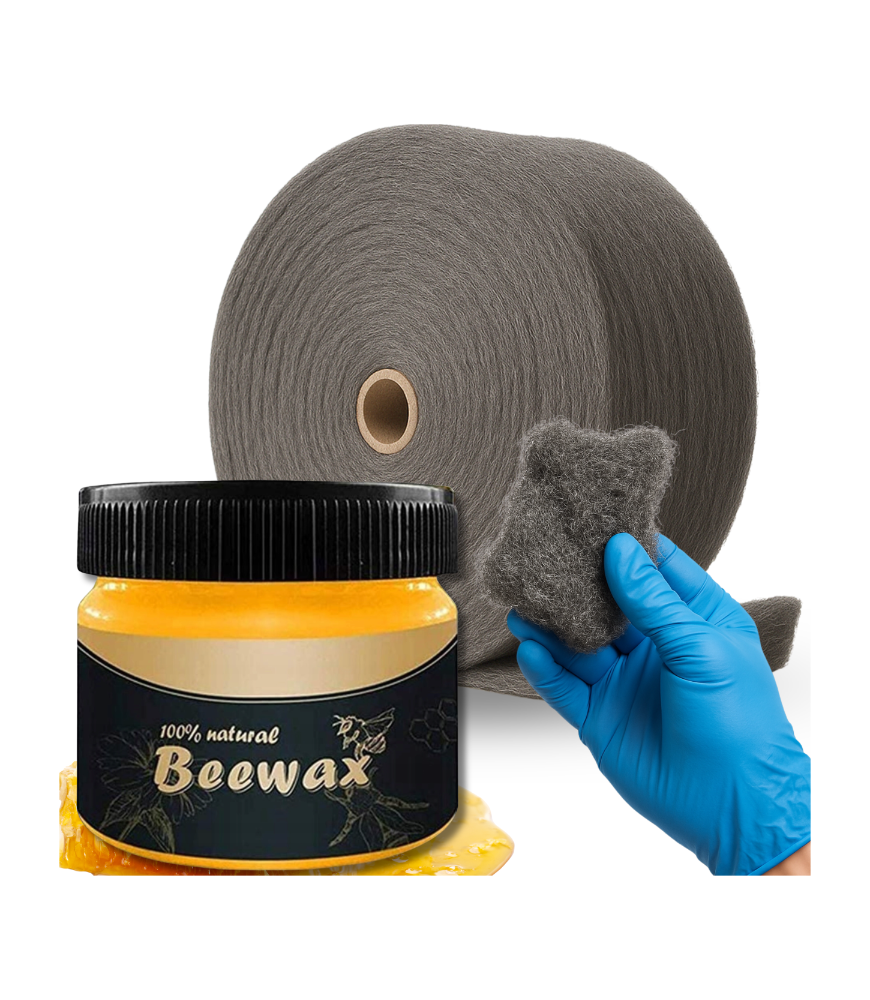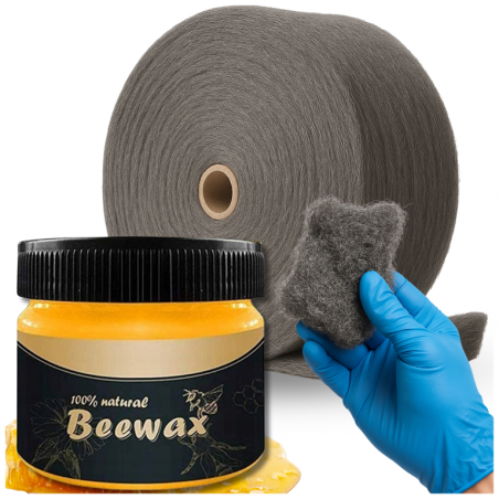 copy of Zestaw do Polerowania Drewna Podłóg Mebli Wosk BeeWax + Wełna Stalowa 250g + Para Rękawiczek Nitrylowych GRATIS!