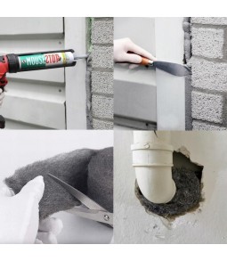 1️⃣ Podwójna ochrona – połączenie masy uszczelniającej i wełny stalowej zapewnia kompleksową barierę przed gryzoniami.